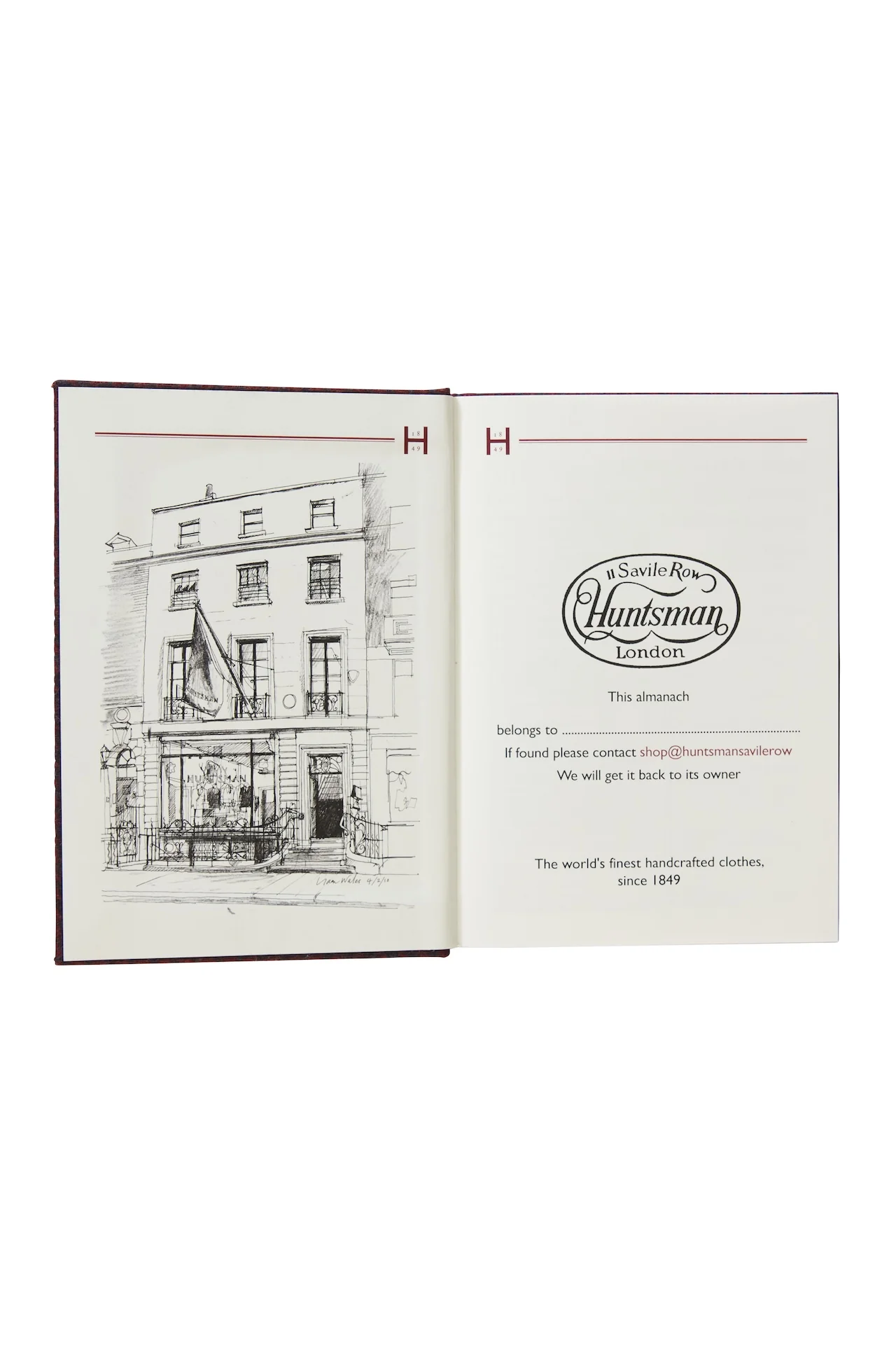Huntsman Tweed Almanachs are full of useful sartorial facts, care tips and information about Huntsman and our history. Discover the story behind Huntsman and Kingsman, and browse vintage tailoring illustrations for inspiration. With beautiful blank sheets of paper for you to write on, this book is perfect for note-taking and sketching. Each almanach is covered in an exclusive house tweed. Your almanach comes finished with a personalised Huntsman name label affixed to the front cover, the style you'd find inside one of our bespoke garments, which you can personalise for yourself or a loved one.
